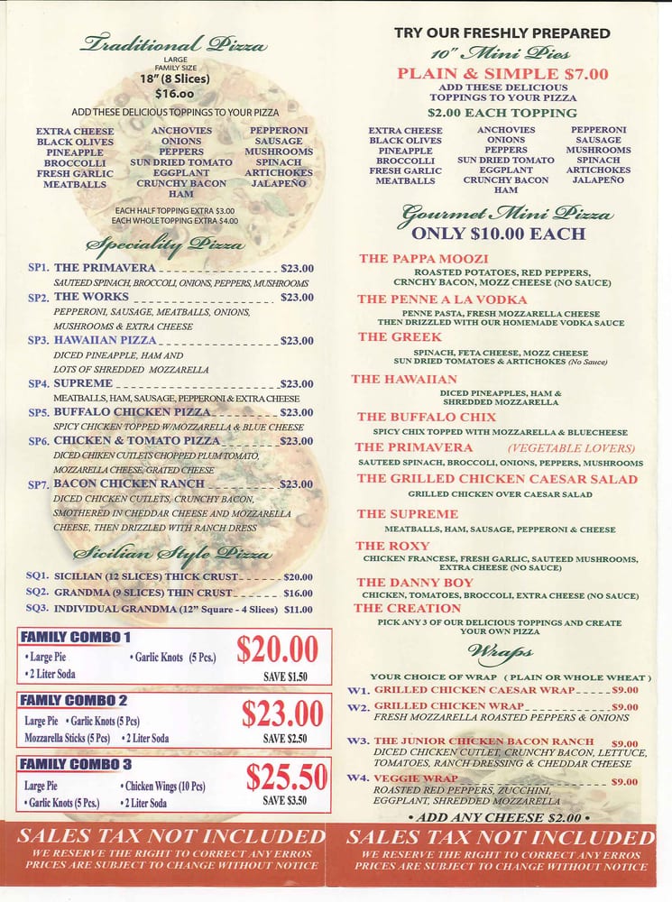 Welcome to Maspeth Pizza, the beloved pizzeria nestled in the heart of Maspeth, New York. This culinary gem offers an enticing menu that’s sure to delight both traditionalists and adventurous eaters. The highlight of the menu is undoubtedly the offering of mini pies, with options like the classic 10" mini pie and unique cauliflower crust for those seeking a healthier alternative.
